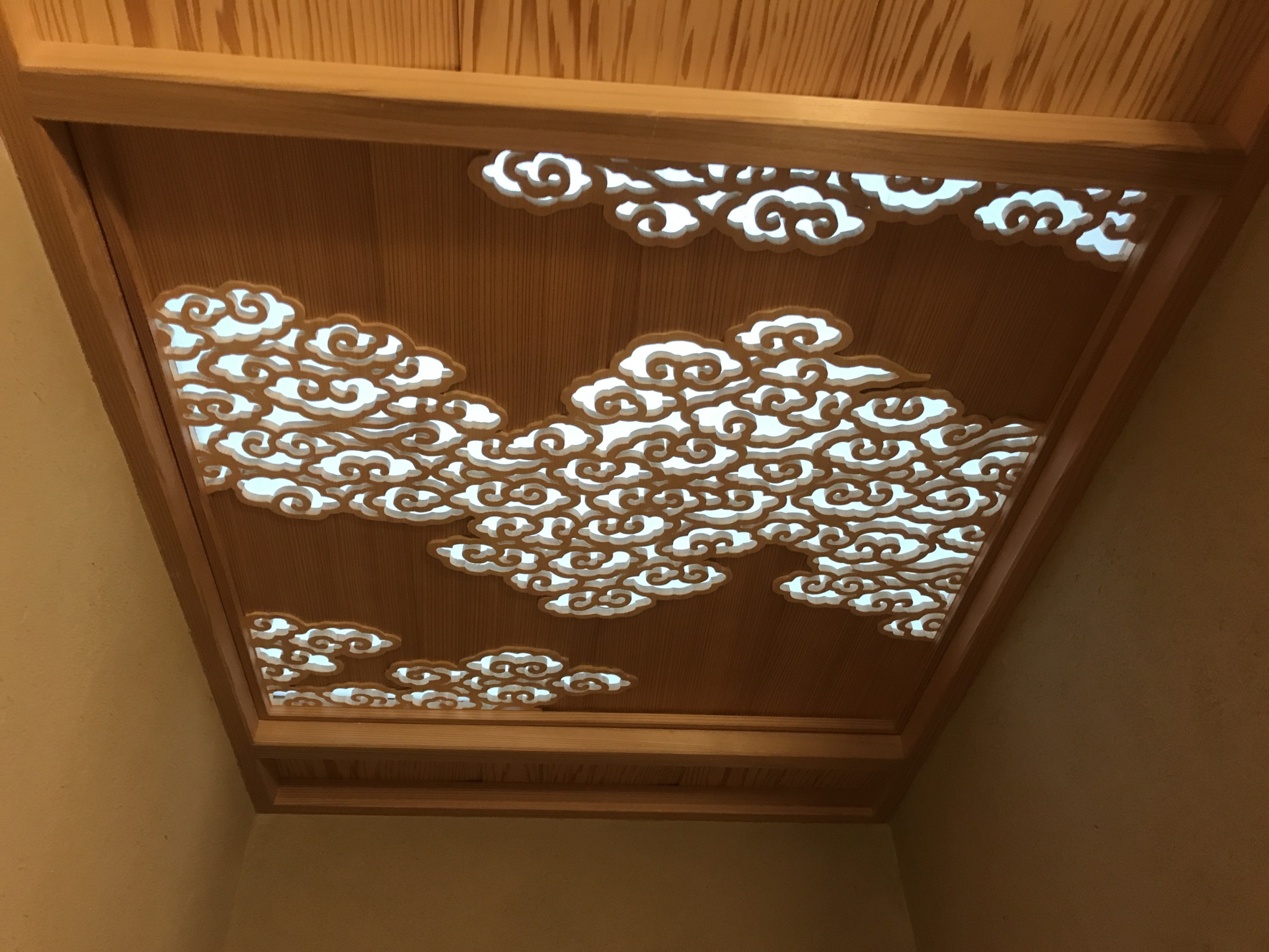 明かり取りの天窓、瑞雲文様の切り抜き
